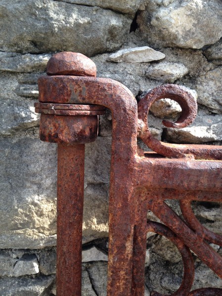 I love the iron work fence attached to the stone wall at Goliad State Park. Beautiful.
