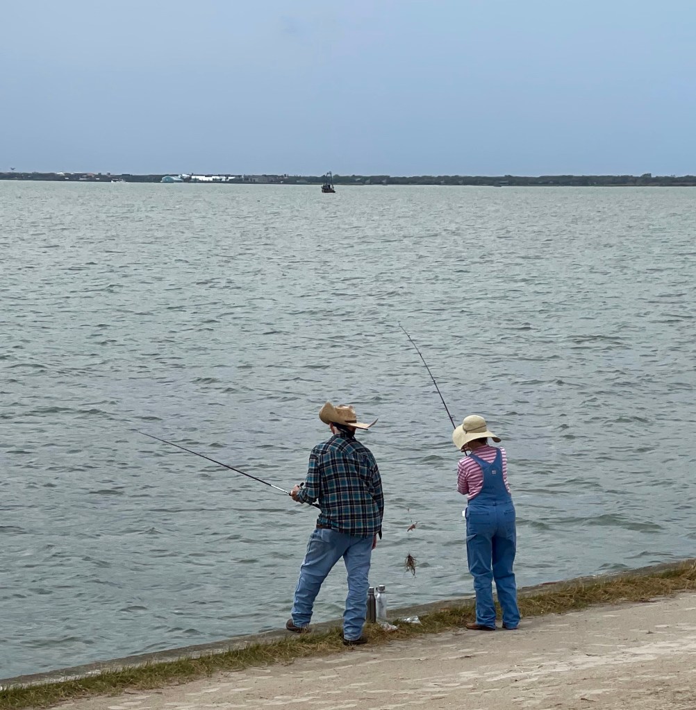 Our neighbors were out fishing. Their big sun hats caught my eye.