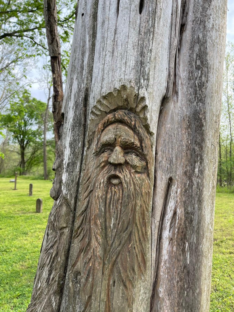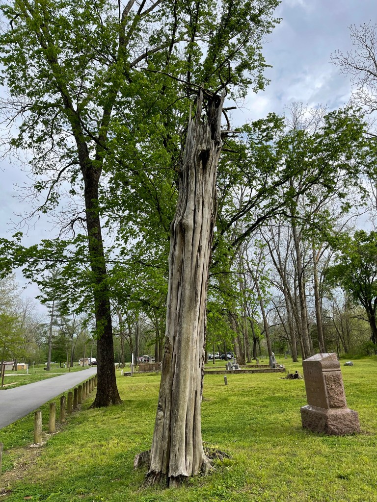 Just an old tree trunk in a cemetery? Nope. On closer inspection…