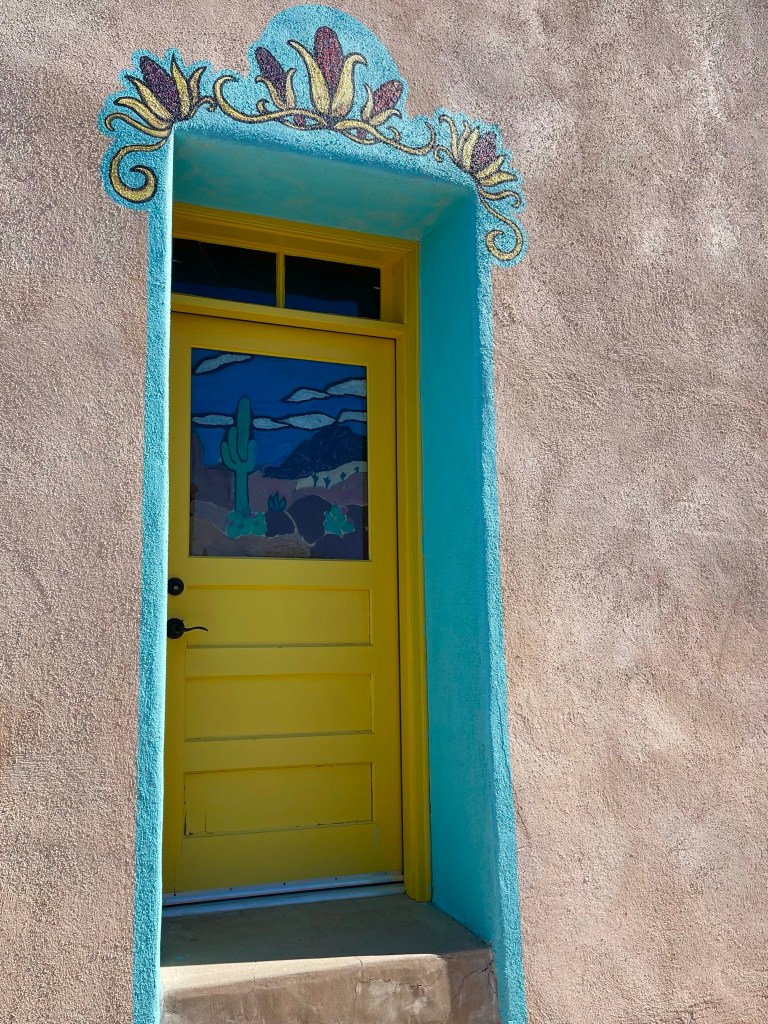 A colorful and welcoming yellow door, Old Town Artisans, Tucson.